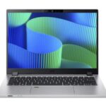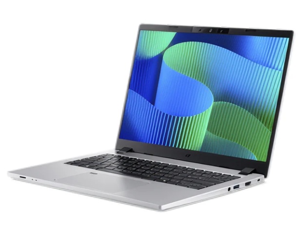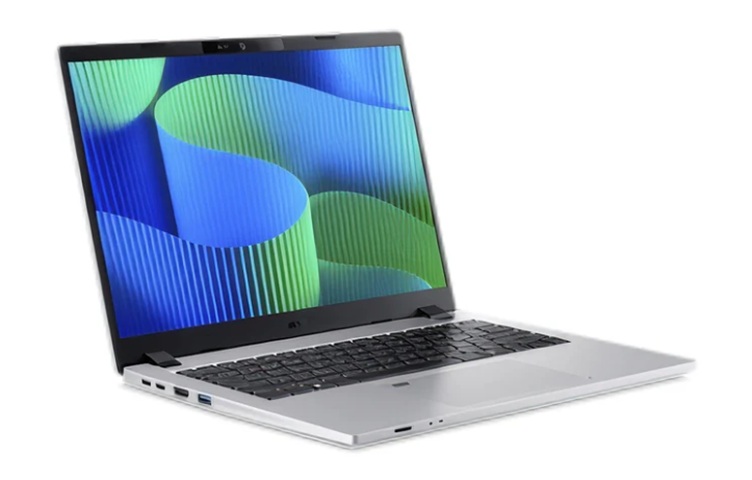 O Notebook TMP214-56-72UM – Caracteristicas externas 2x Microfones, Webcam com bloqueio privativo, Tela de 14″ 2x Portas USB Tipo-C® Thunderbolt™ 4 energizada para alimentação.